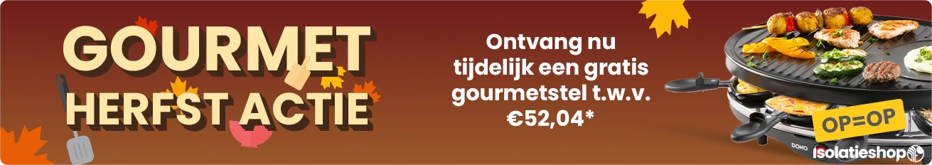 De Isolatieshop levert het gourmetstel niet na. De klant moet zijn/haar gourmetstel zelf toevoegen aan de bestelling door de code 'GOURMET2025' te gebruiken. - Online bestellingen